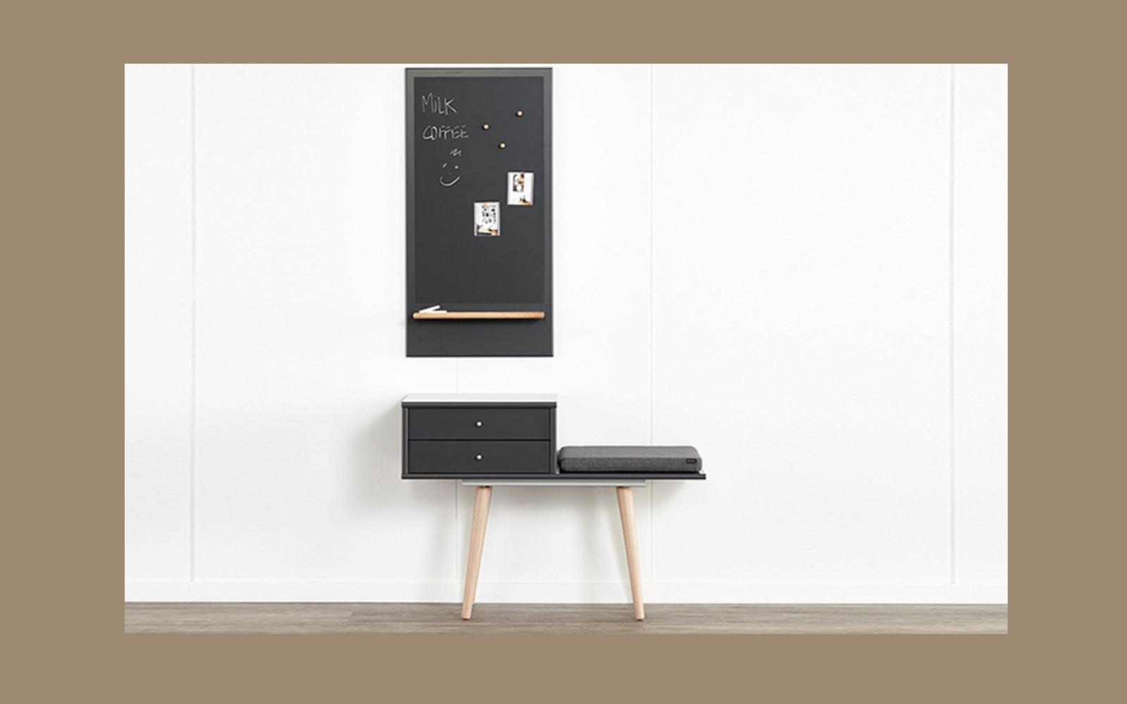 Skuffen er endnu en genialt opbevaringsløsning. Her kan du gemme handsker, pung og nøgler ned, så du har dem lige ved hånden, når du skal ud af døren!