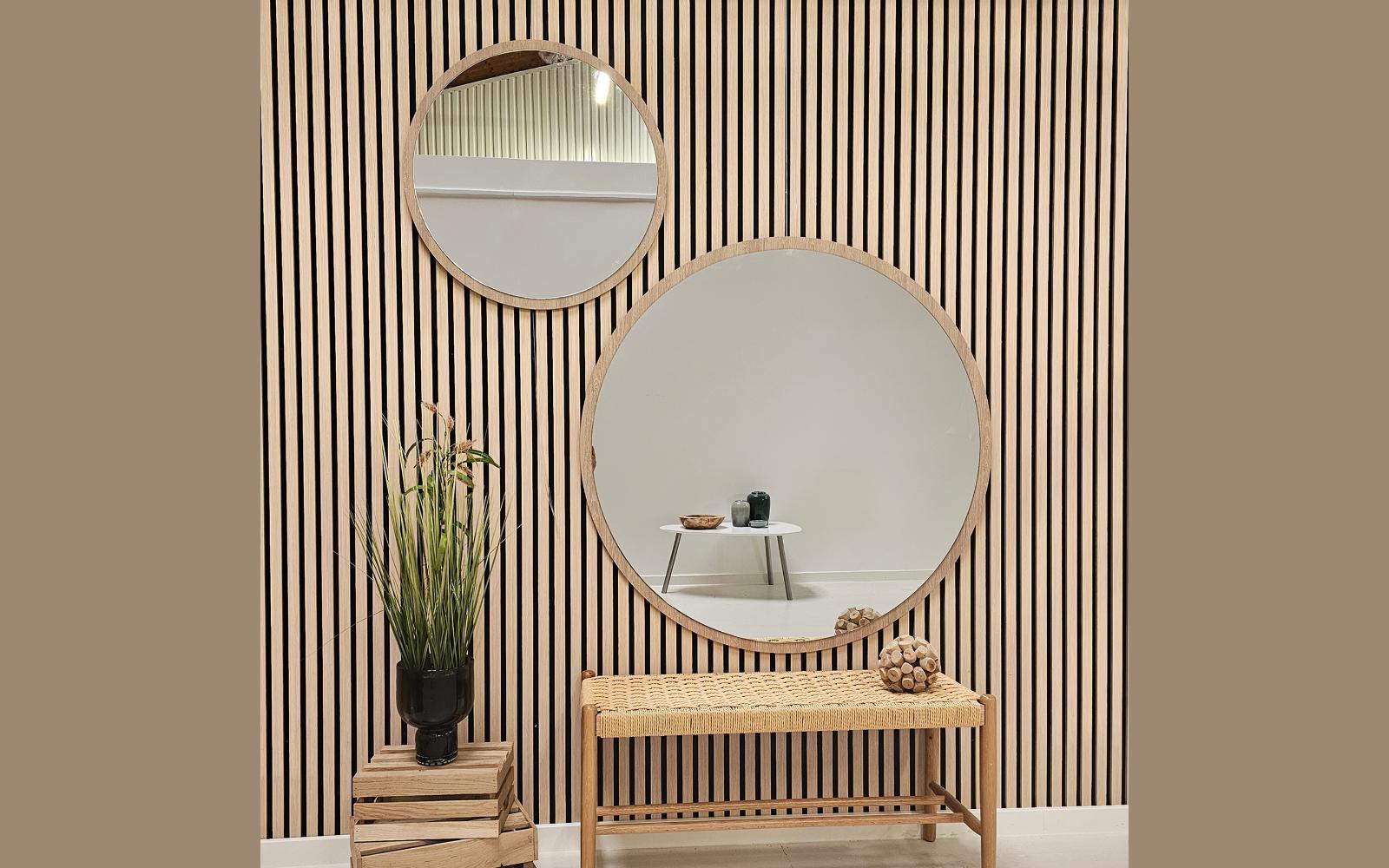 Vi har et flot udvalg af spejle hos Møblér. Vi har blandt andet runde spejle som dem på billedet, men vi har også kvadratiske og rektangulære spejle, hvis du har brug for at kunne tjekke hele outfittet ud fra top til tå.