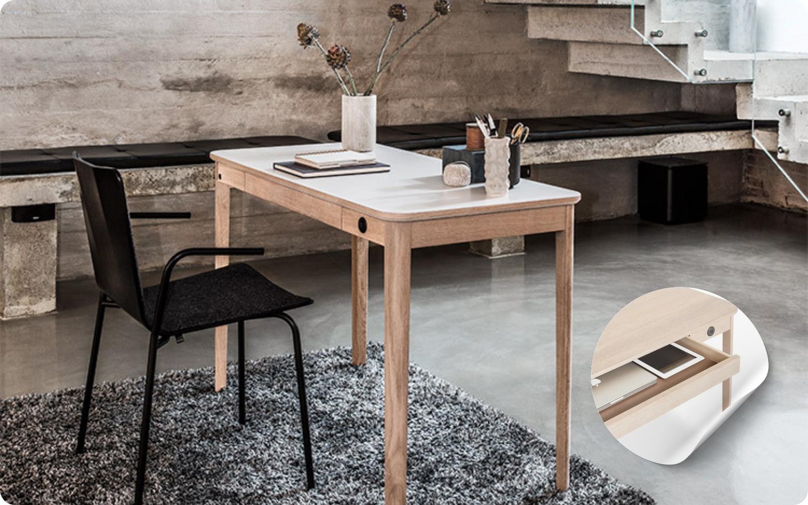 Ønsker du et separat rum til dit hjemmekontor? Så er der mange muligheder for at indrette et arbejdshjørne i et separat rum – selvom du har knap så meget plads 🤏 Har du ikke et separat rum, men generelt pladsmangel – så har vi også en løsning, bare rolig. Et skrivebord i stuen - ja, en arbejdsplads i stuen kan også sagtens fungere. Hvis du vælger et bord samt opbevaringsløsninger, der passer til stilen i rummet. Vælg smarte opbevaringsmøbler som reoler eller skænke, der ikke fylder for meget, men giver dig mulighed for at gemme arbejdsrodet væk – så skaber du et arbejdsværelse i hjemmet 🏠👩💻