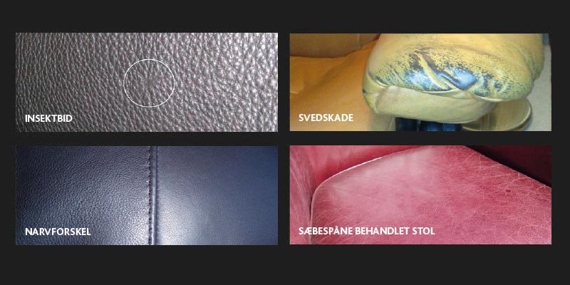 Ægte læder er et rent naturprodukt, og præcis som med træ, er der ikke to huder, der er helt ens. Hudens udseende og egenskaber varierer også efter hvilken del af dyret den er skåret fra, og hvilke påvirkninger den har været udsat for. Man skærer oftest uden om de værste naturmærker, f.eks. svære gødningsskader. Er huden præget (dækfarvet læder) dvs. påtrykt et narvmønster, vil de enkelte flader oftest være mere ensartede. Normalt sørger producenten for at placere de mest synlige uregelmæssigheder bag på eller udvendigt på møblet.