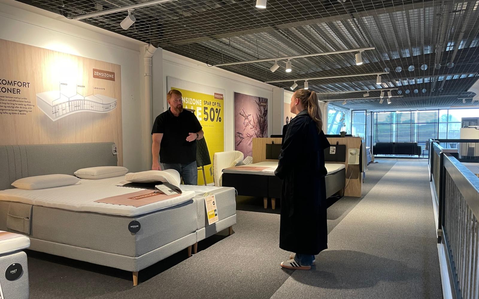 Jamen, jeg ville tage dem med op i sengeafdelingen, så jeg kan tage dem med rundt i butikken for at prøve de forskellige senge. Også ville jeg helt sikkert starte med at spørge om, hvad de sover i nu. Det er med til at starte en samtale om, hvad de synes er godt og dårligt ved deres nuværende seng, så jeg ved, hvilken retning vi skal gå i. Skal det være noget bedre eller det samme? Det handler altså om at finde ud af, hvad kundens behov er, så vi sammen kan finde den rigtige seng.